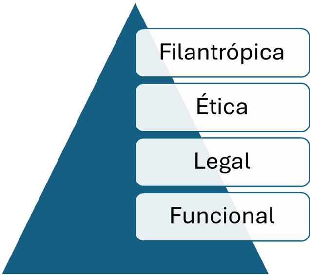 En la “Pirámide Social de la IA”, sus autores identifican cuatro componentes de la responsabilidad social de la IA, empezando por la noción básica de que la adecuación funcional de la IA sustenta todo lo demás. En cuanto al siguiente componente, el legal, se exige que los sistemas de IA actúen de forma coherente con las expectativas del gobierno y la ley, cumpliendo al menos los requisitos legales mínimos. En el nivel siguiente, las responsabilidades éticas son la obligación de hacer lo que es correcto, justo y equitativo, y de evitar o mitigar el impacto negativo para los stakeholders. Por último, en cuanto a las responsabilidades filantrópicas, se espera que existan “buenos ciudadanos de la IA”, que contribuyan a afrontar retos sociales como el cáncer y el cambio climático.